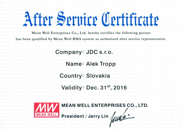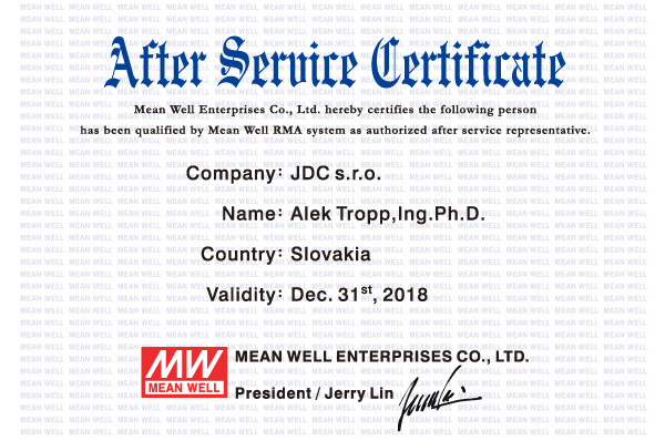 Naša firma je autorizovaný distribútor a servisné stredisko značky MEAN WELL